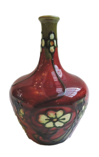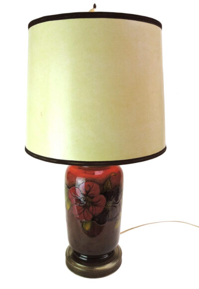 W. Moorcroft – Flambé Pottery Table Lamp with Shade – “Hibiscus Pattern”