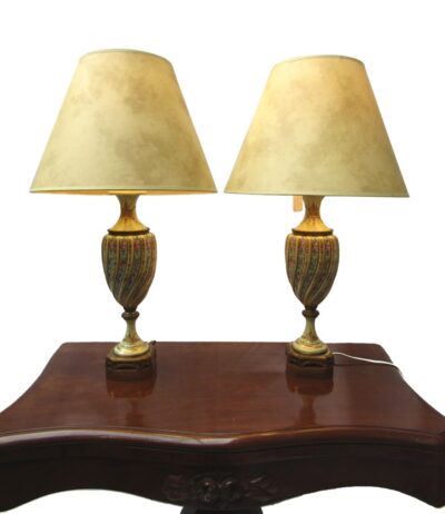 Pair of Early to Mid – 20th Century ‘Sevres’ Porcelain Lamps – Twist Body and Painted Flowers.