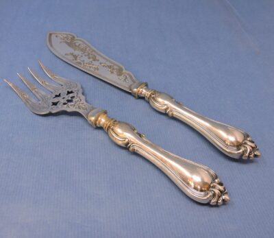 German W.M.F. Silver-Plated & Engraved Pair of Fish Servers, c. 1890