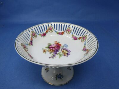 Small Unmarked German Porcelain Compote with Pierced Bowl and Floral Decorations