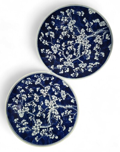 Fantastic Pair of 19th Century Large Porcelain Chinese Chargers – Blue and White “Prunus Hawthorn Pattern” Circa 1860