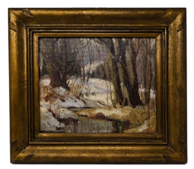 Canadian Artist Clayton David Insley 1908-1988, Oil on Board “Winter Scene” Striking Gold Frame