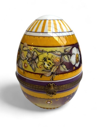 Impressively Large & Colourful French Limoges Porcelain Egg Shaped Perfume Box for Caron Paris