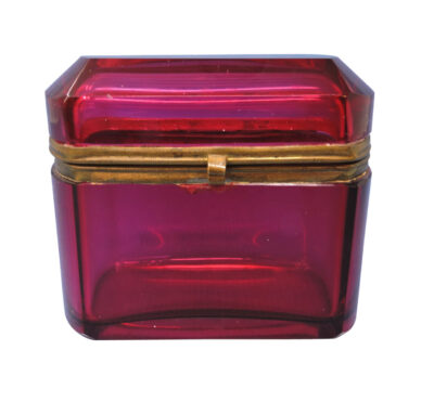 Cranberry Glass Jewelry / Trinket Casket with Brass Fittings & Hinge, c. 1860