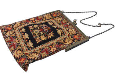 Multi-Coloured Print Fabric Evening Bag with Embossed Austrian Sterling Silver Frame and Chain