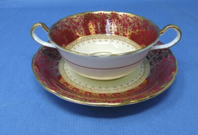 Aynsley England Bone China Two-Handled Cream Soup Bowl & Underplate – “Coventry Deco” Pattern #7840 – Each Set Sold Separately