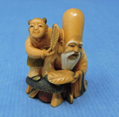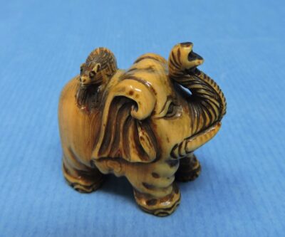 Carved Japanese Ivory Netsuke of a Rat Sitting on the Back of an Elephant c.1900