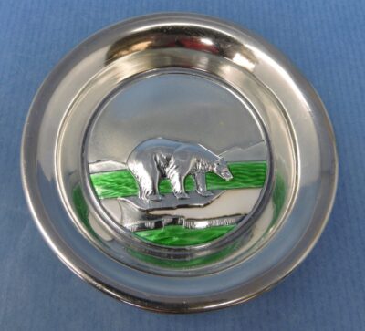 Vintage N.M. Thune – Norway Sterling Silver and Enamel Small Dish with Polar Bear Motif