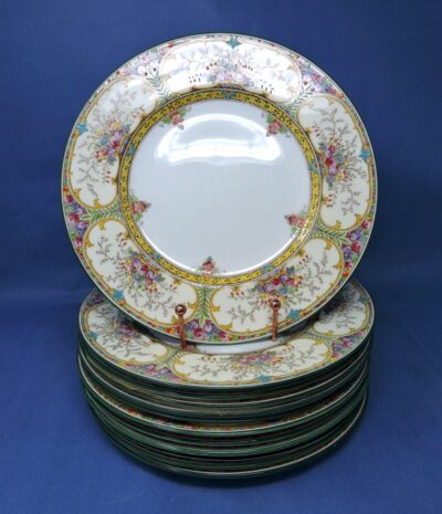 Wedgwood England Bone China Hand-Painted, Enamelled Set of 12 Dinner Plates – “St. Austell” Pattern
