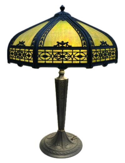 American Green Slag Glass Lamp – with Curved Panels – circa 1900