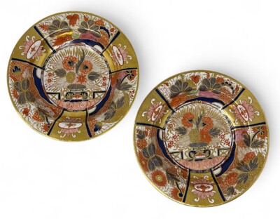 Enchanting and Rare Pair Of Antique English Chamberlain Worcester Cabinet Plates in “Fine Old Japan” or “Nelson” Pattern Circa 1805