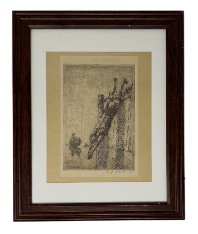 Canadian William J. Wood (1877-1954) Etching of a “Diver” 1920, Midland Ontario