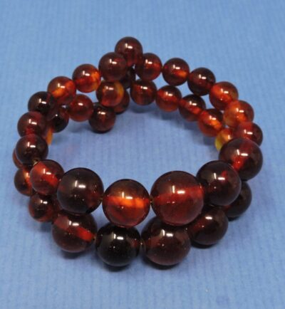 Stretchable Cuff Bracelet with Two Rows of Graduated Baltic Amber Round Beads