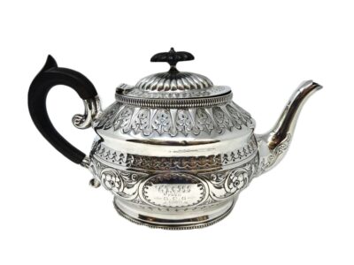 Birmingham English Hallmarked Sterling Silver Embossed Teapot, 1898 with Removable Interior Strainer
