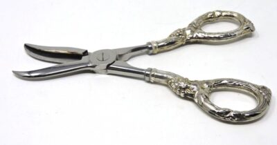 A Pair of Italian Silver-Plated and Stainless Grape Scissors, Grapes and Leaves Decoration