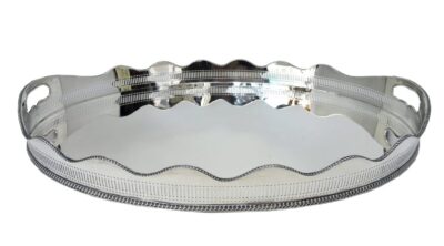 Large 22 inch English Silver-Plated Gallery Tray with Handles, Scalloped Rim – Late 19th Century
