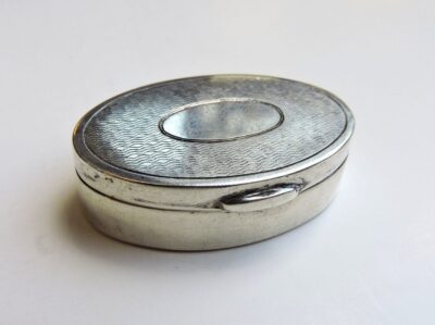 Birmingham England Hallmarked Oblong Sterling Silver Miniature Pill Box, dated 1926