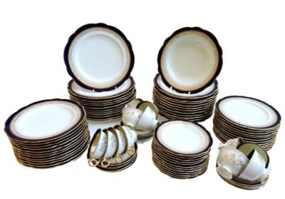 Coalport – Cobalt Blue, Gold & White English Bone China – Dinner Set for 12 – 84 Pieces. circa 1910
