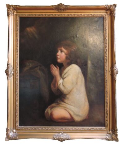 After Sir Joshua Reynolds – “The Infant Samuel” Large Oil Painting of a Child Praying – Late 19th Century