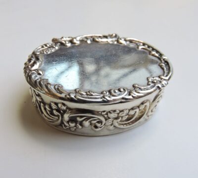 English Hallmarked Birmingham Sterling Silver Embossed Pill Box, dated 1963