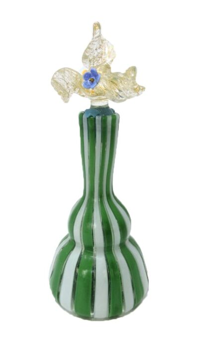 Hand-Blown Murano Italy Latticino Glass Perfume Bottle with Floral & Gilt Glass Stopper