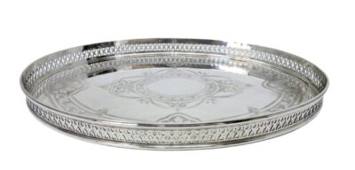 English Silver-Plated on Copper – Gallery Tray with Elaborate Engraving – Primrose Plate Co.