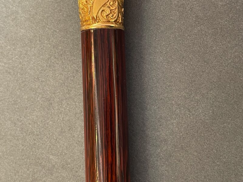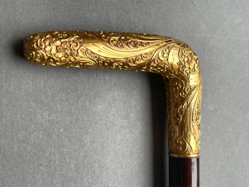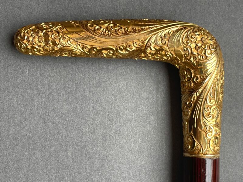 10K Gold Walking Stick / Cane with Decorative Repoussé Handle & Exotic Wood Shaft – dated 1909