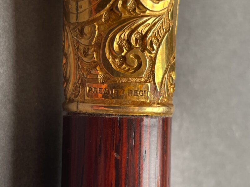 The shaft of the cane is made of an exotic wood – most likely Rosewood.