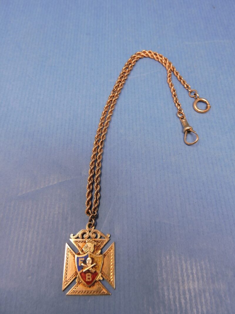 14K Gold Engraved Fob for the Knights of Pythias Order with 10K Yellow Gold Watch Rope Chain – dated 1932
