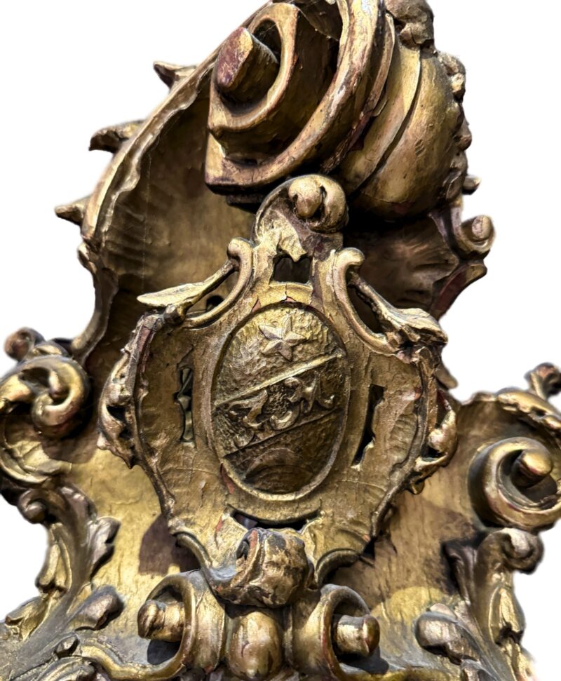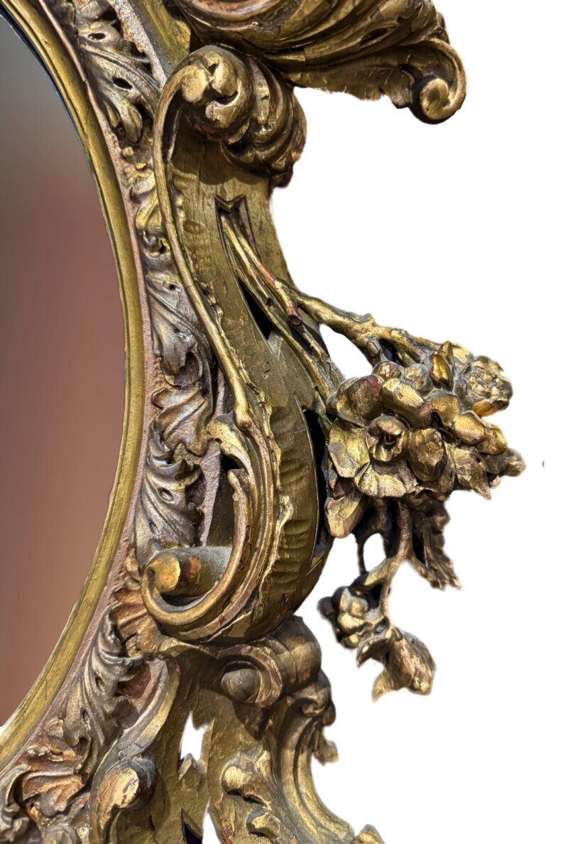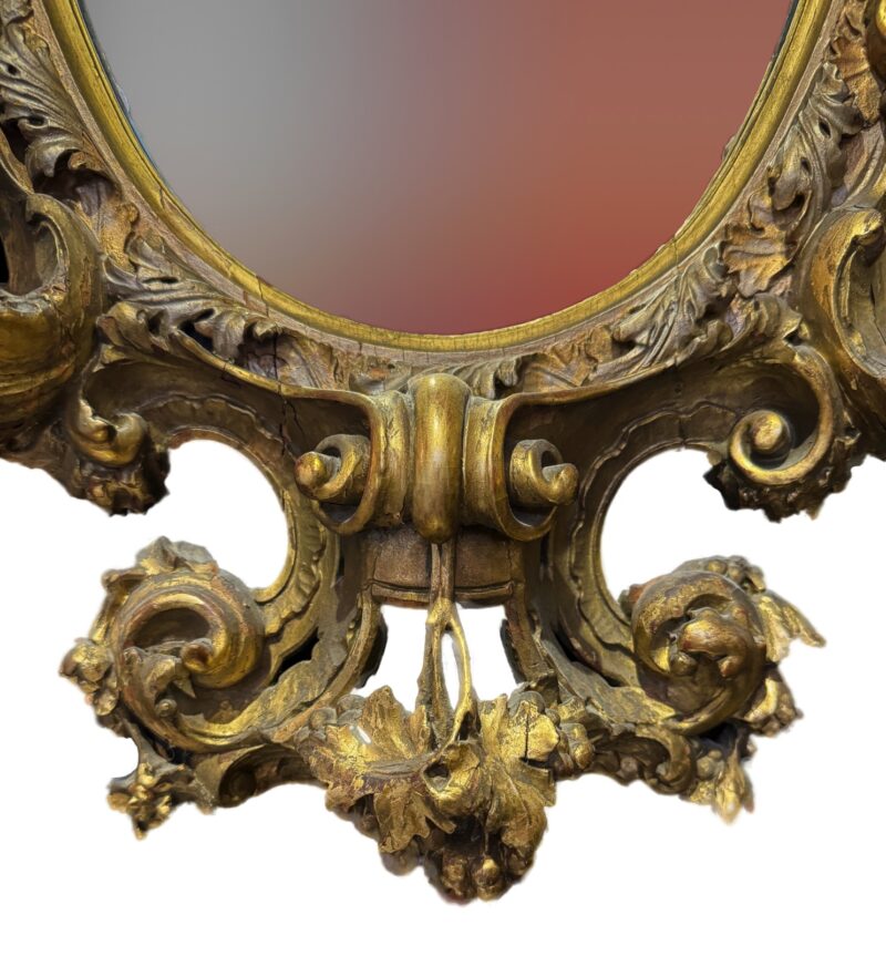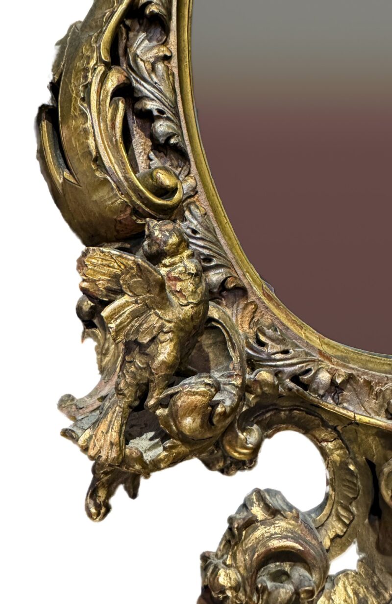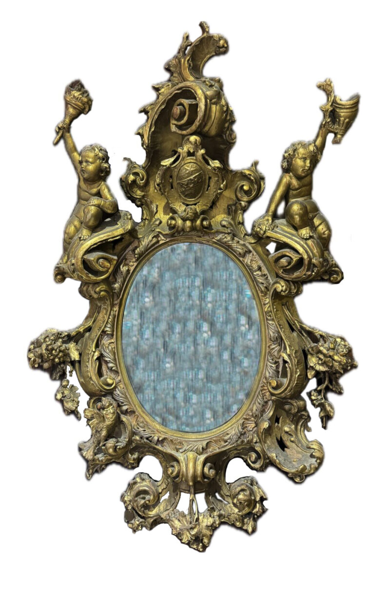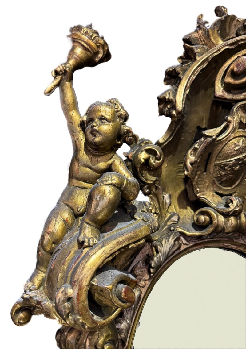 18th Century Italian Baroque Gilt Wood Mirror with Putti & Floral Decoration.