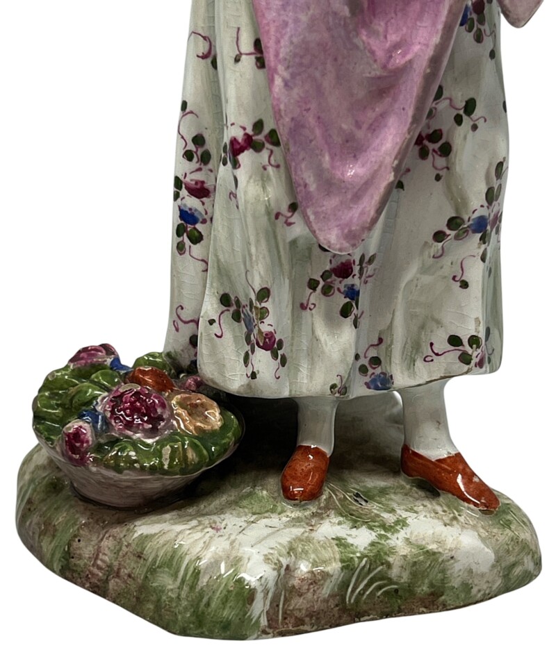 Modeled as a young courting couple, the young man gesturing toward and seems to be “in conversation” with the girl who looks toward him while carrying flowers that she has picked in her apron.