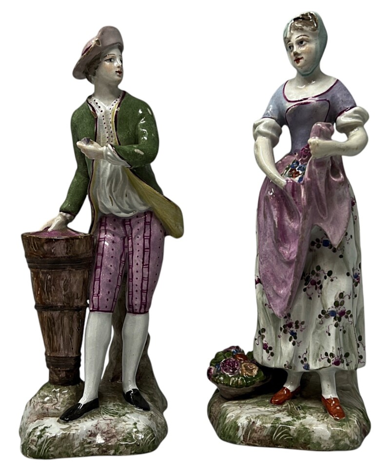 18th Century Strasbourg France Porcelain Faience “Courting Couple” Pair of Figures by Joseph Hannong