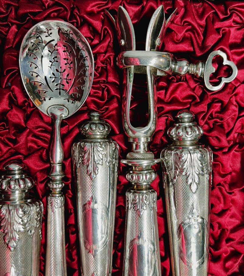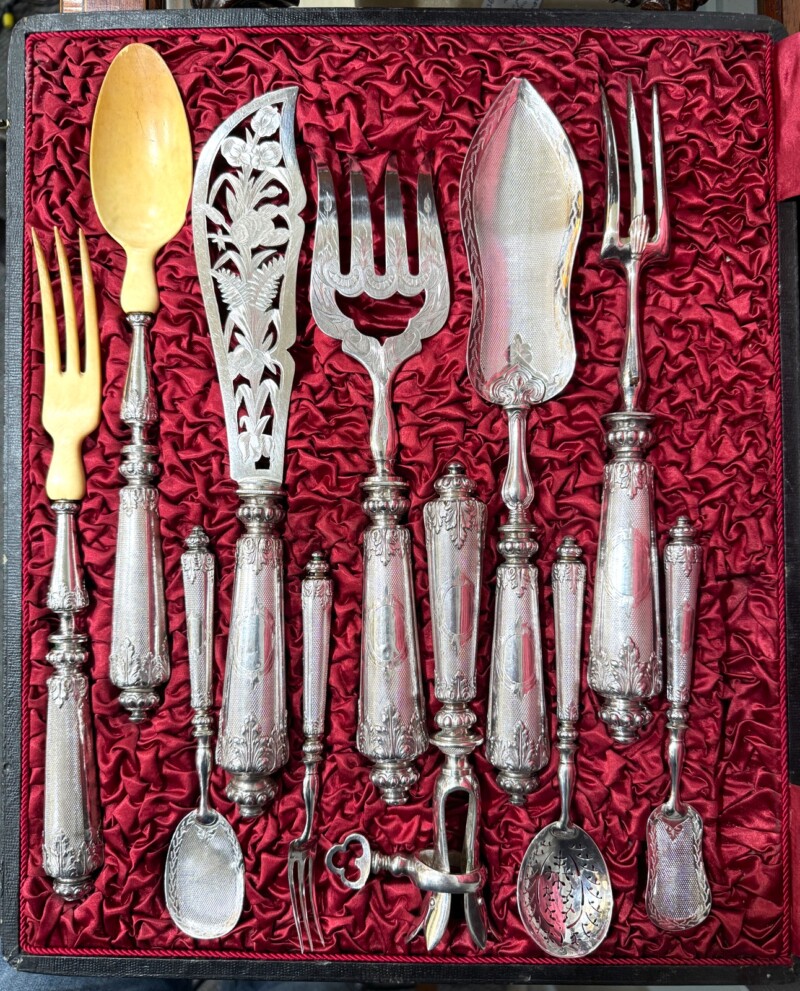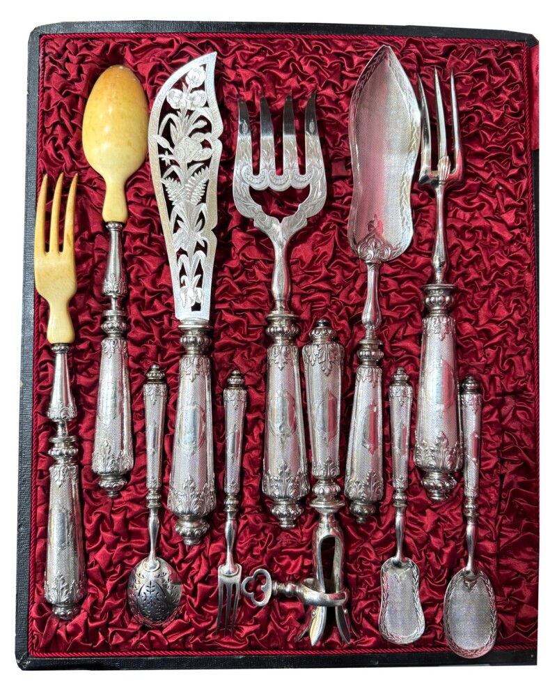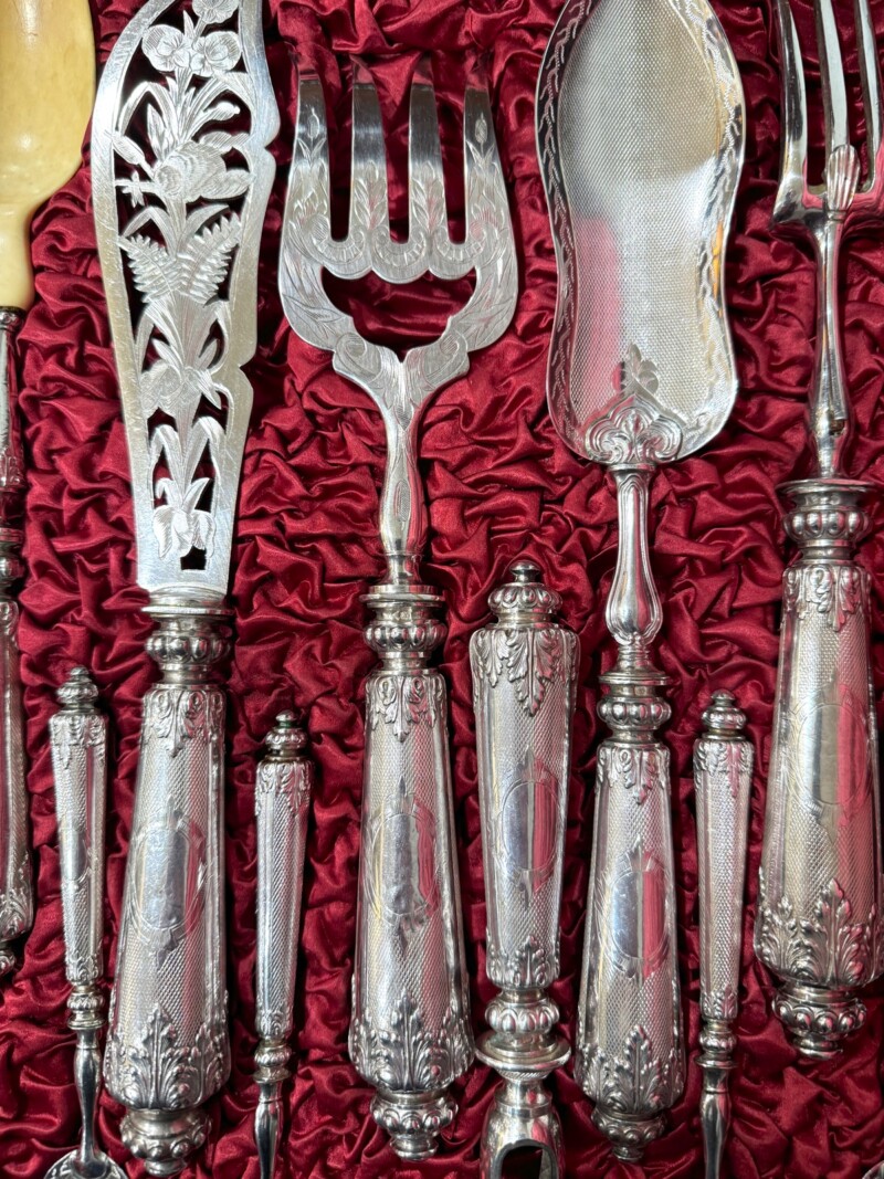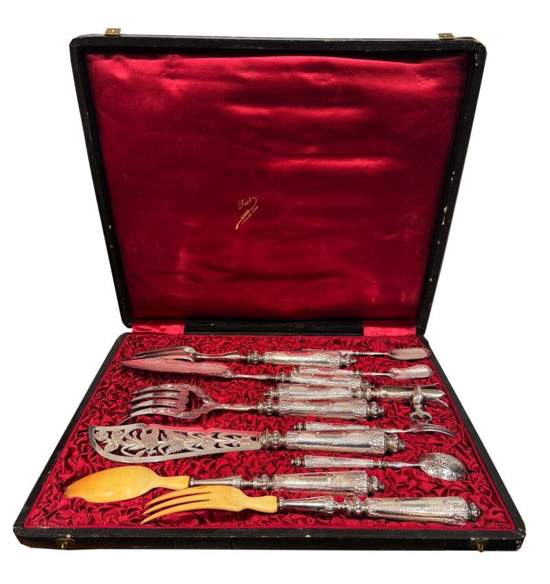 19th Century – 11 piece French .950 Silver Serving Piece Set in Custom Box circa 1860