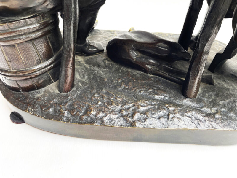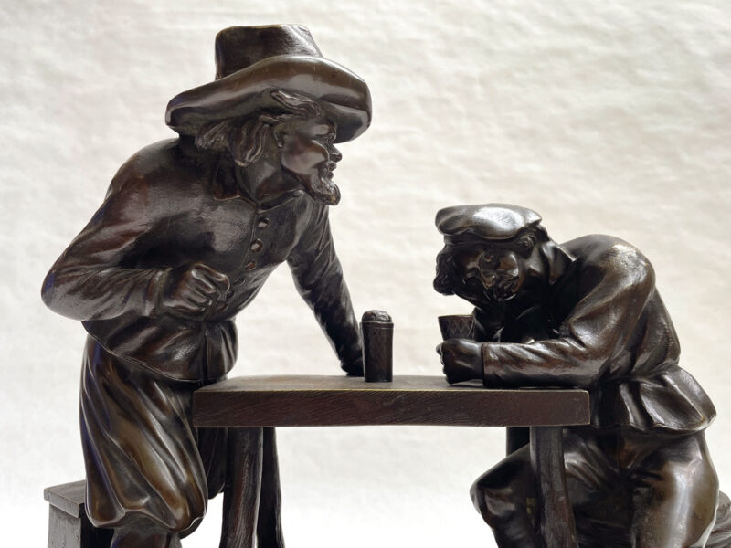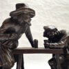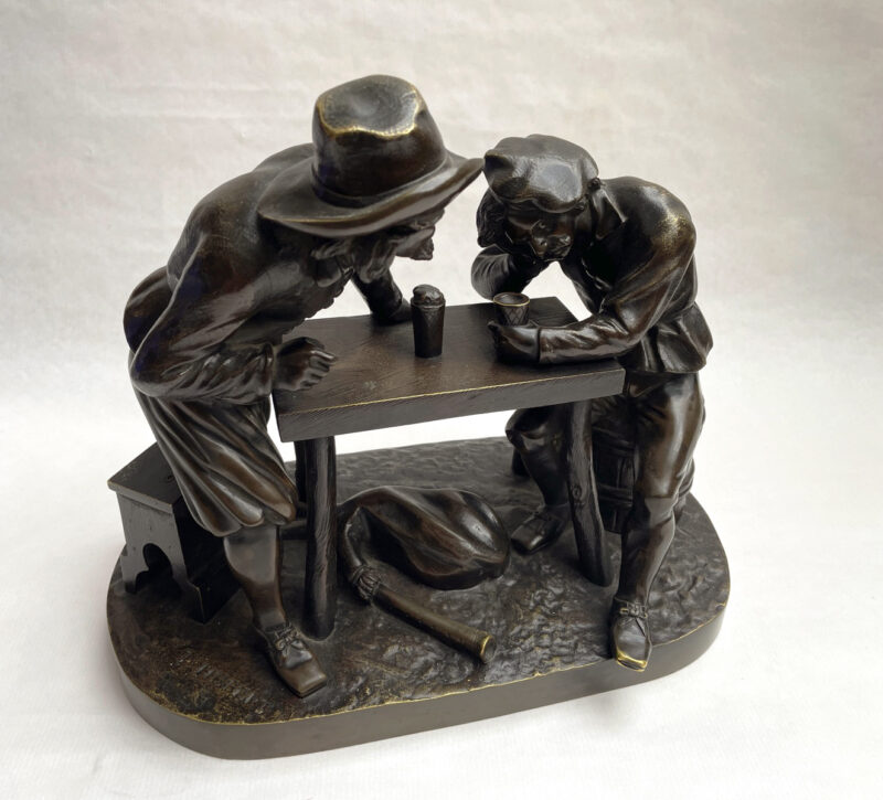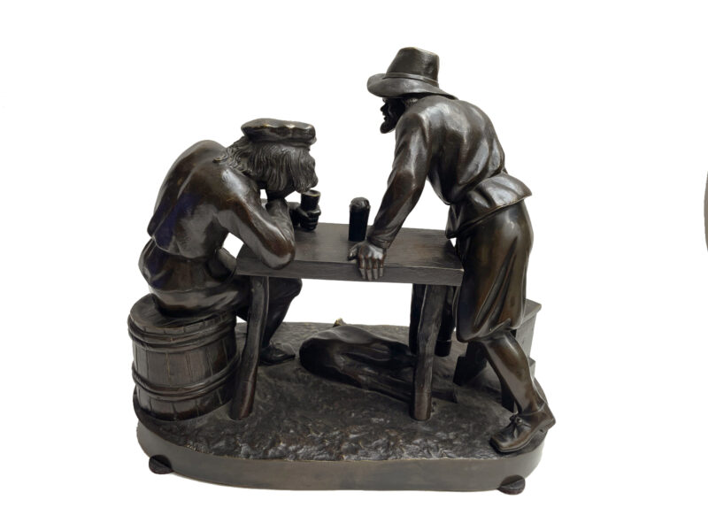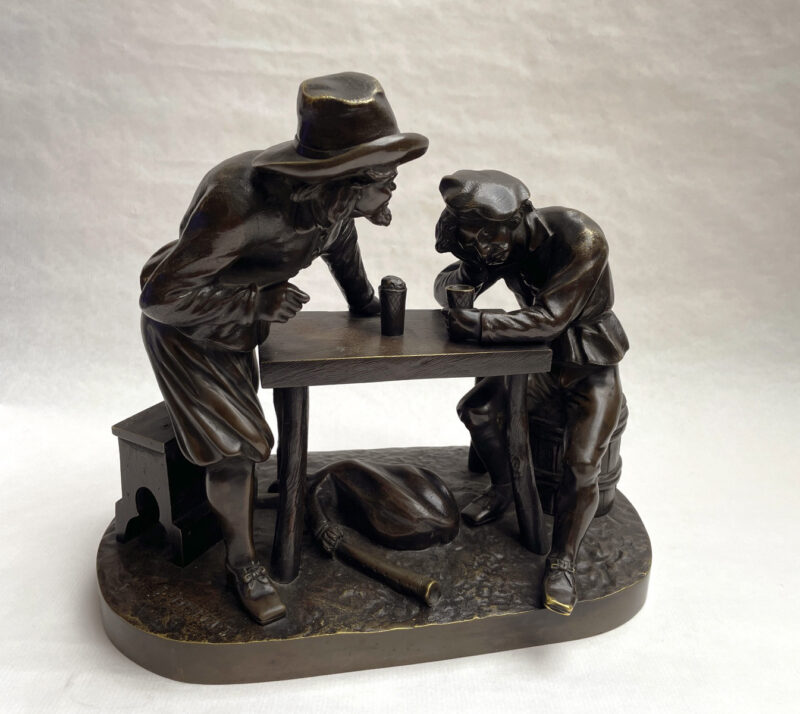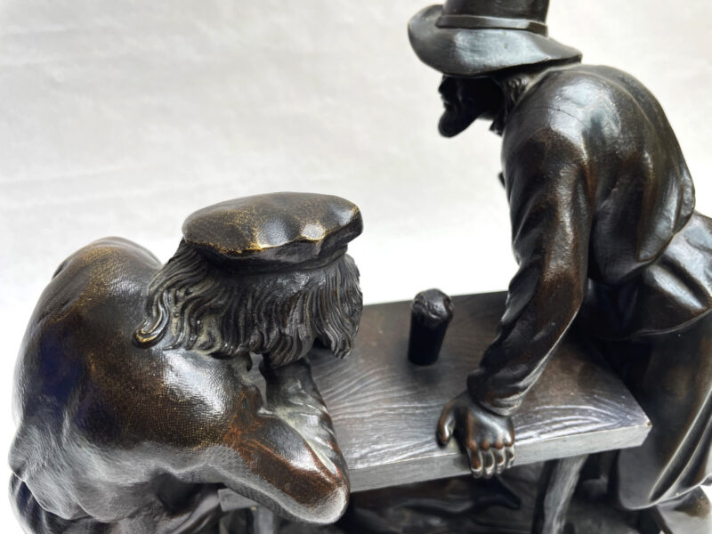 French 19th Century Bronze Sculpture Depicting Two Men Drinking at a Table – by Pierre Eugene Emile Hebert (1828-1893)