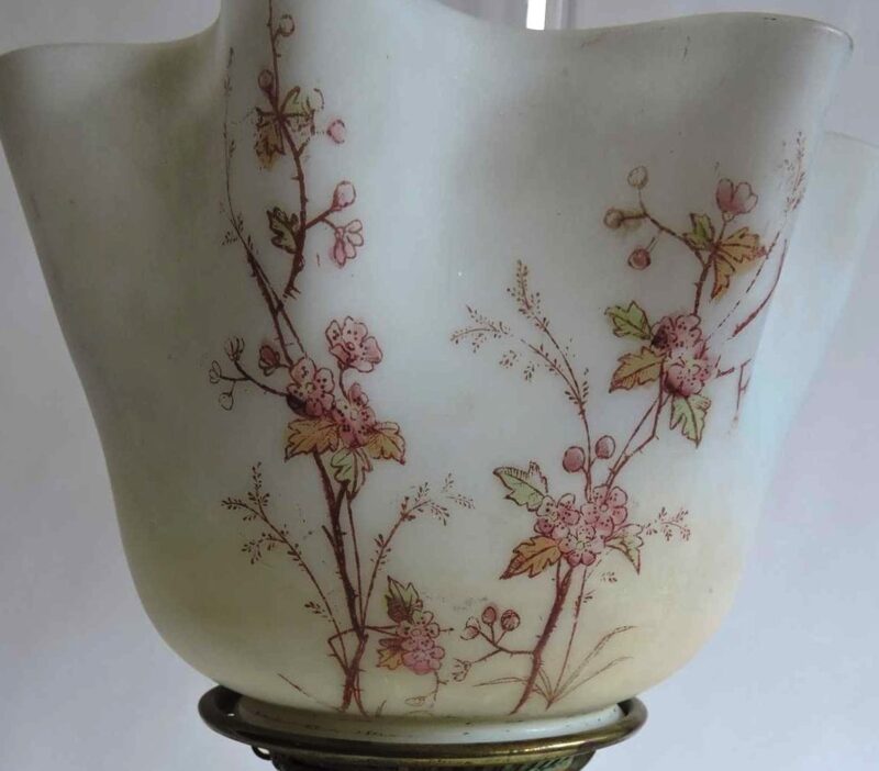 19th Century English Banquet Lamp / Brass Base – Glass Shade & Body