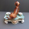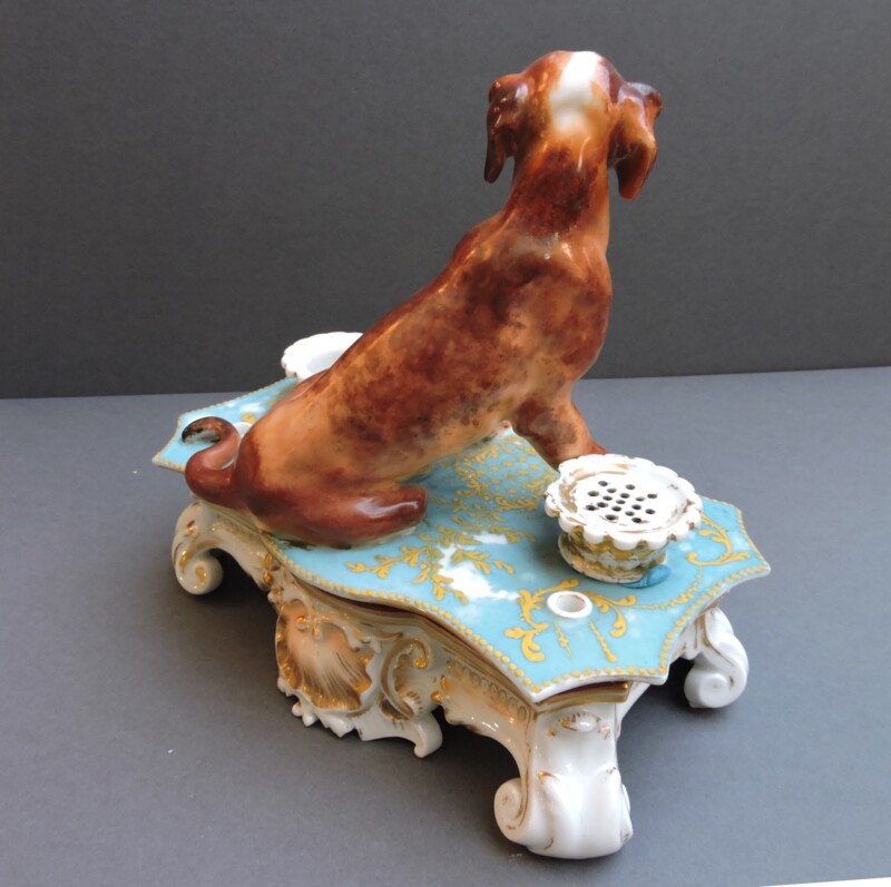 19th Century French Paris Porcelain – Figural Footed Inkwell with Hound Dog