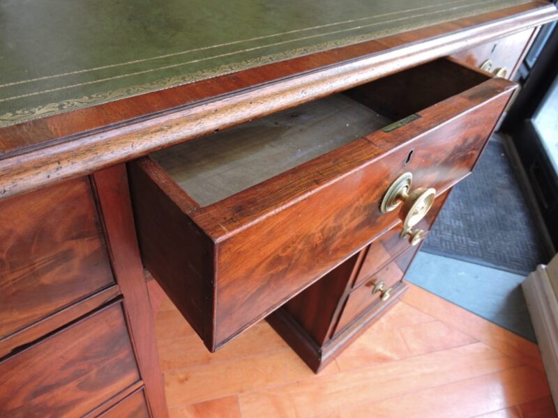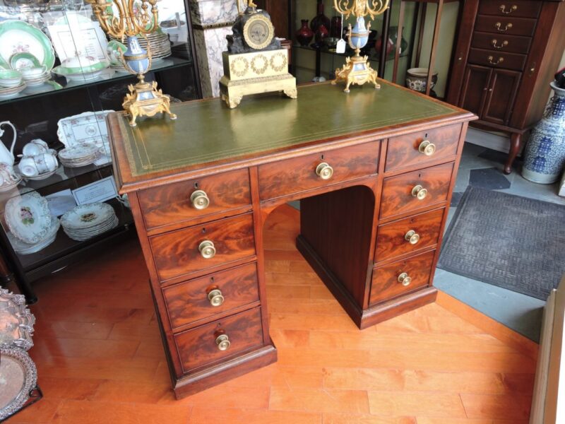 19th Century Mahogany 9-Drawer Desk with Tooled Leather Top