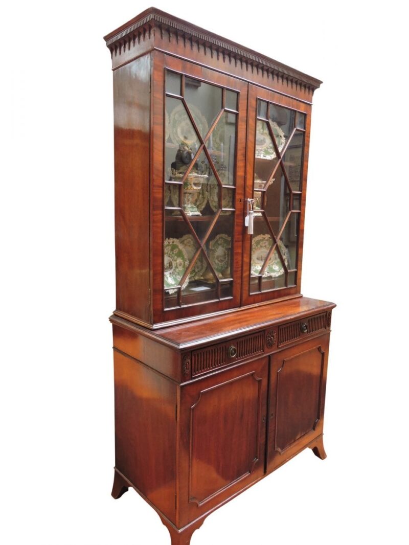 v** SOLD ARCHIVES **vA lovely two-piece mahogany wood breakfront display / bookcase cabinet.