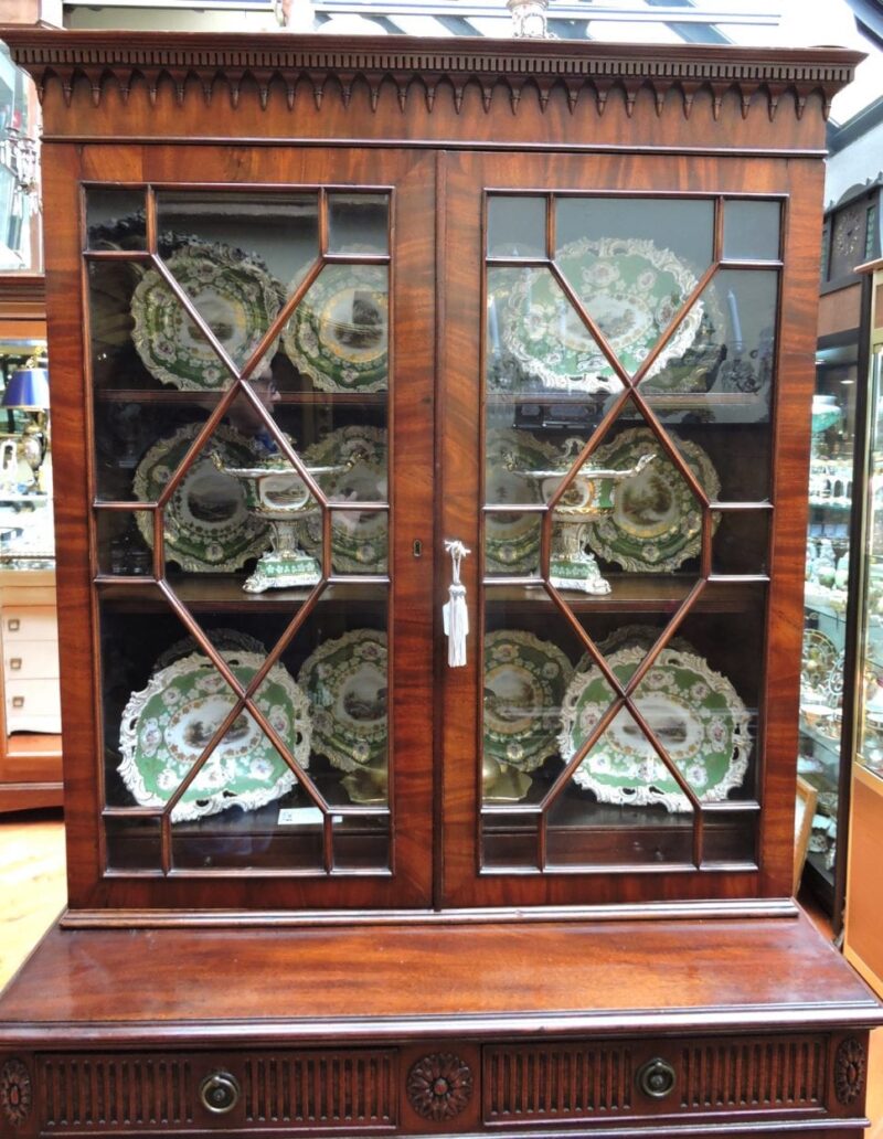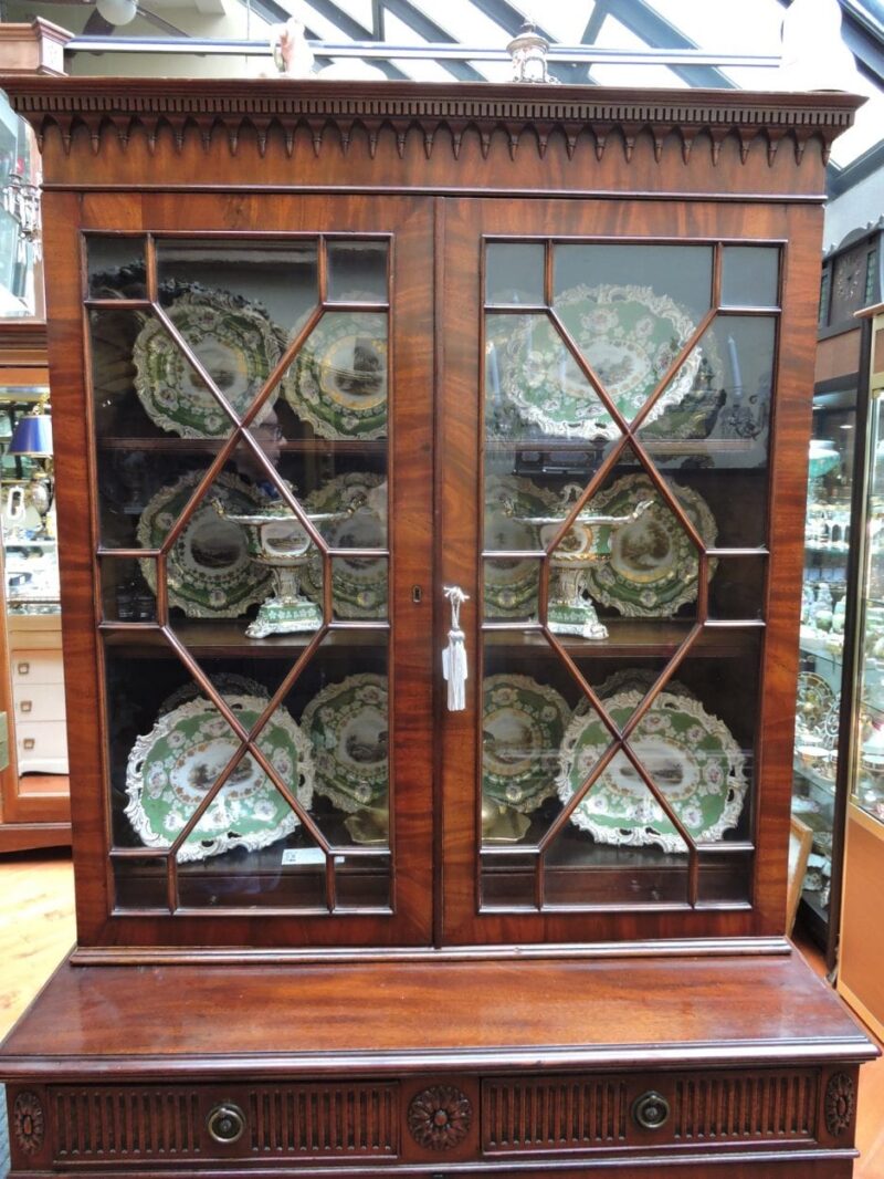 19th Century Mahogany Breakfront Display / Bookcase Cabinet