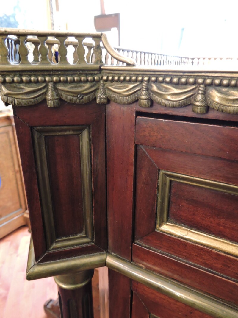 19th Century – Napoleon III – French Empire – Mahogany Abattant / Secretaire with Bronze Handles, Inlay, Gallery & Marble Top circa 1880.