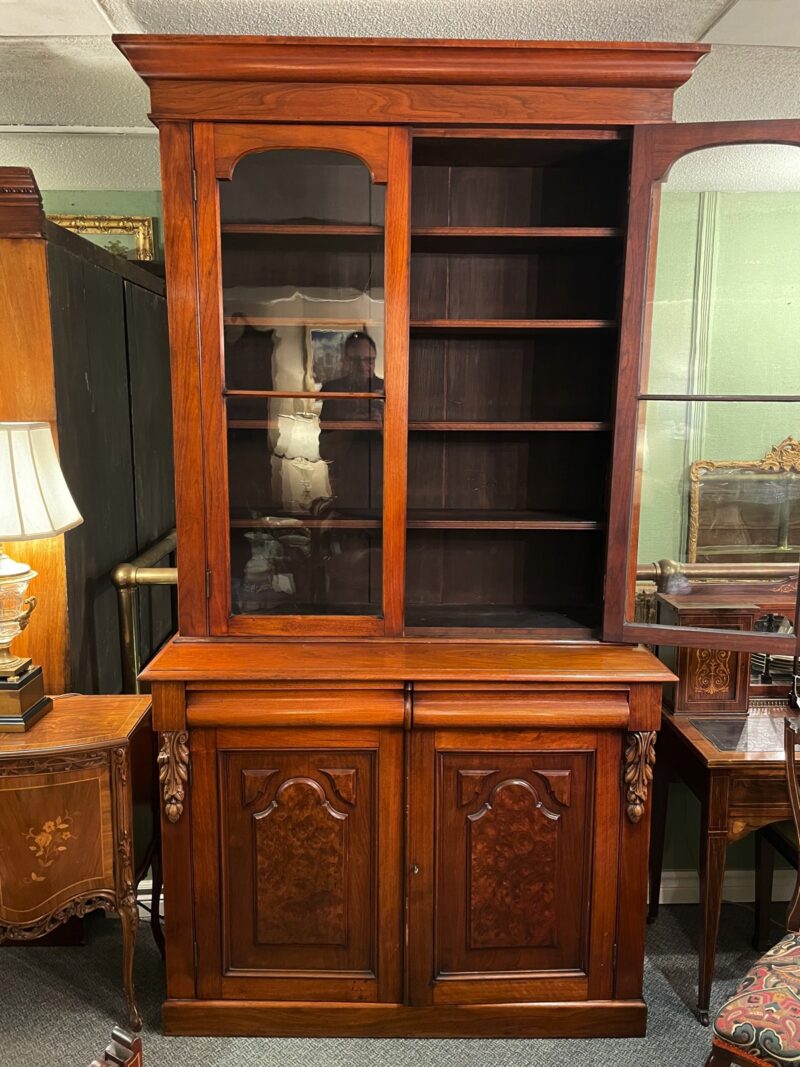 19th Century Walnut & Burled Walnut Bookcase Cabinet – circa 1850