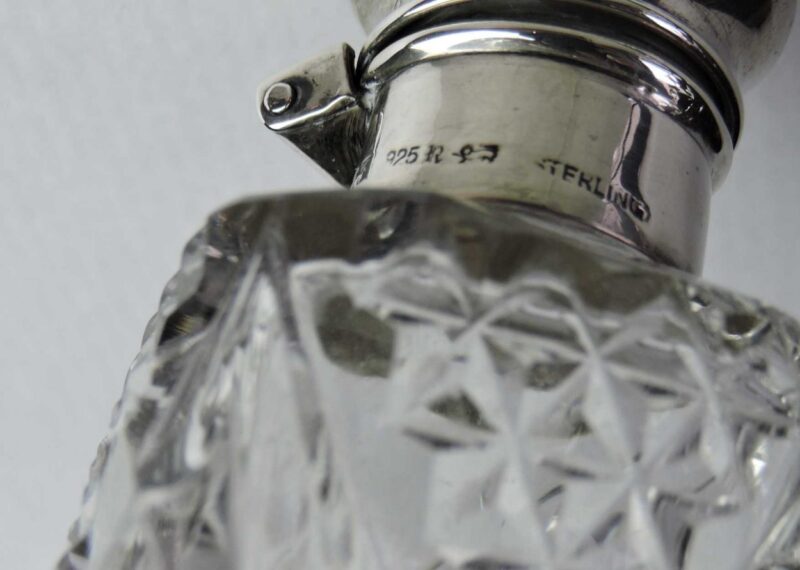 Clear Crystal And Cut Glass Perfume Bottle With Sterling Hinged Lid.