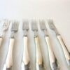 Each knife is 8 1/2 inches long and each fork is 7 1/2 inches long.