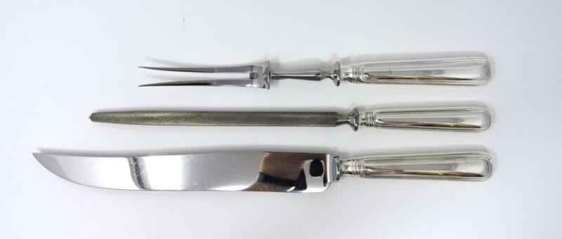 3 Piece Birks Sterling Silver Meat Carving Set – “Saxon Pattern”