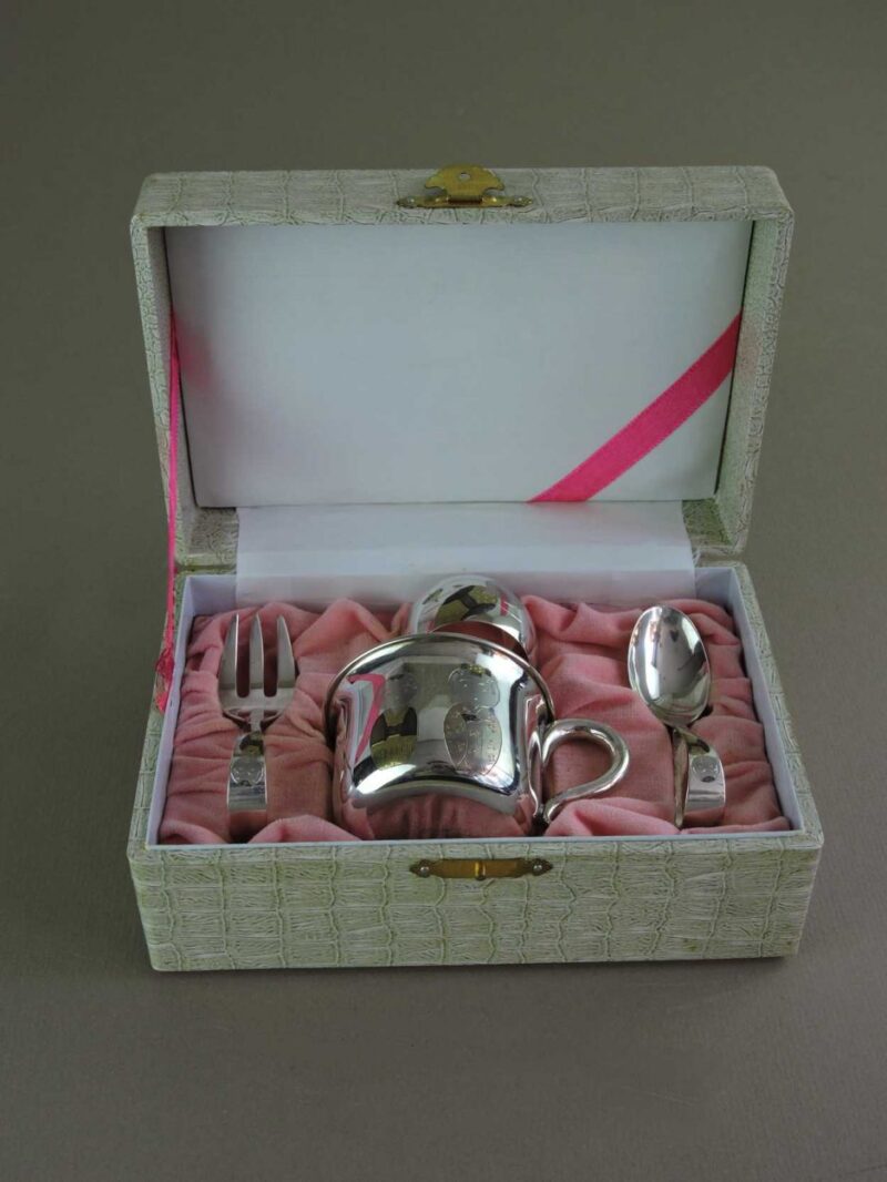4 Piece Child’s Christening Set – Japanese .950 Sterling Silver Set – With Additional Fitted Case