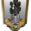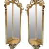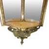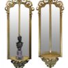 An unusual and rare matching pair of 19th Century Italian or French gilt wood and gesso mirrors that hang in corners.  Two separate mirror panels that corner at an approximate 65 degree angle and each with a shelf for display.  The gilding on each mirror is very high quality – and each is decorated on the top and bottoms with wood, plaster and gesso swirl and floral decorations that are fragile – but in excellent condition.