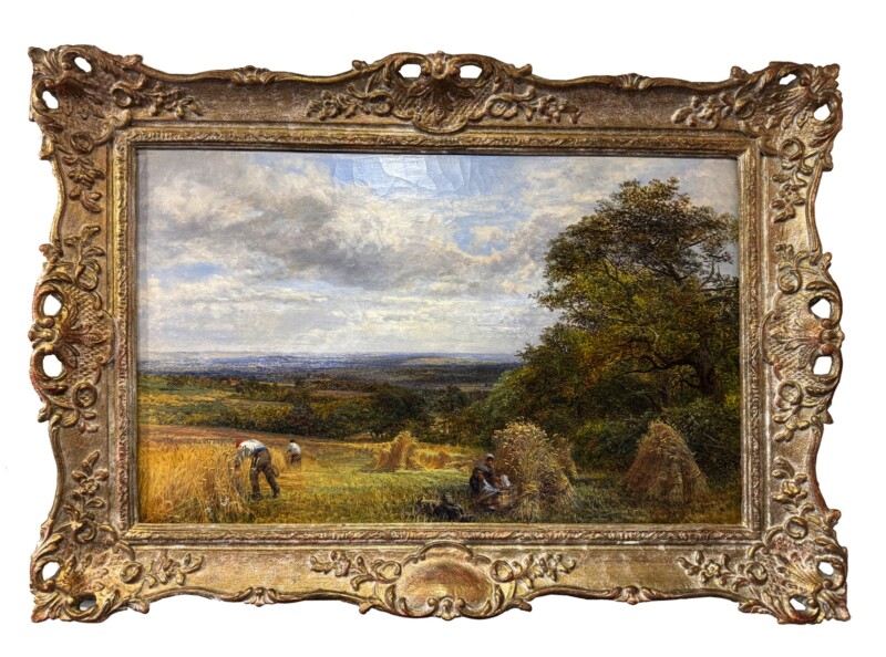 Alfred J. Bennett – British (active 1861-c.1923) “Corn Fields at Capel, Surrey” Oil on Canvas 1865