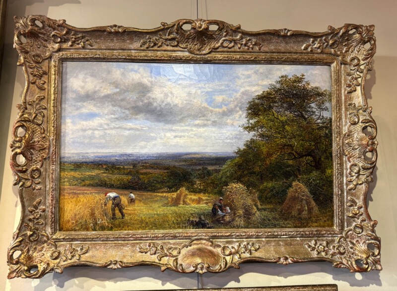 v** SOLD ARCHIVES **vThe subject of this large oil painting on canvas is “Corn Fields at Capel, Surrey” and it shows his great talent for landscape painting in terms of the composition, colour sophistication and his technical skill with great attention to detail, making you want to reach out and touch the tips of the corn. Handsomely framed, referencing the time period of the work.
