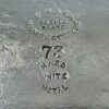 This unique napkin rings has a monkey dressed in an 18th century cutaway coat with a cane in its left hand. The napkin ring itself has a lovely floral engraved pattern. The monkey and napkin ring are attached to a silver plated stand which is marked R.W. & Co. Manufacturers Triple Plate #73 Hard White Metal.