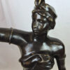 A wonderful antique Art Nouveau style bronze figurine of a woman holding a torch base. (The glass torch shade is missing).  May have been a bannister light.  There is an electrical wire fed through from the base the the torch – so a socket can be installed.  A torch frosted shade is needed to complete the lamp.